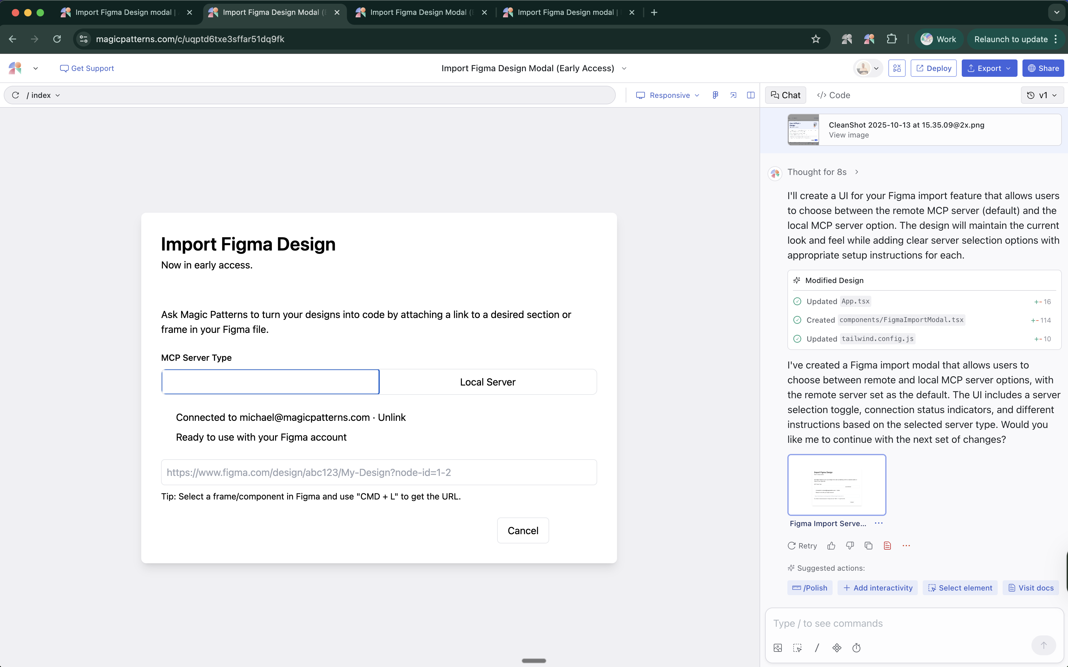 A month ago we released the Figma MCP powered imports, it was using the local Figma MCP in a clever way to more accurately bring Figma Components into Magic Patterns.